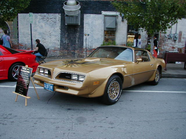 | I always enjoy looking at this beautifully restored Gold Edition. It makes me want to restore mine, but for now I'll enjoy mine as an unrestored T/A. | Well, here I sit in the Heavy Modified Class. I didn't think a set of headers, yellow spark plug wires, and a set of vintage Jensen rear speaker grills would put me here....wonder what class I'd be in if I tubbed it, took off the shaker scoop and put a blower on it??? |