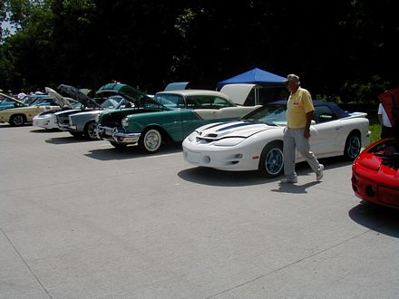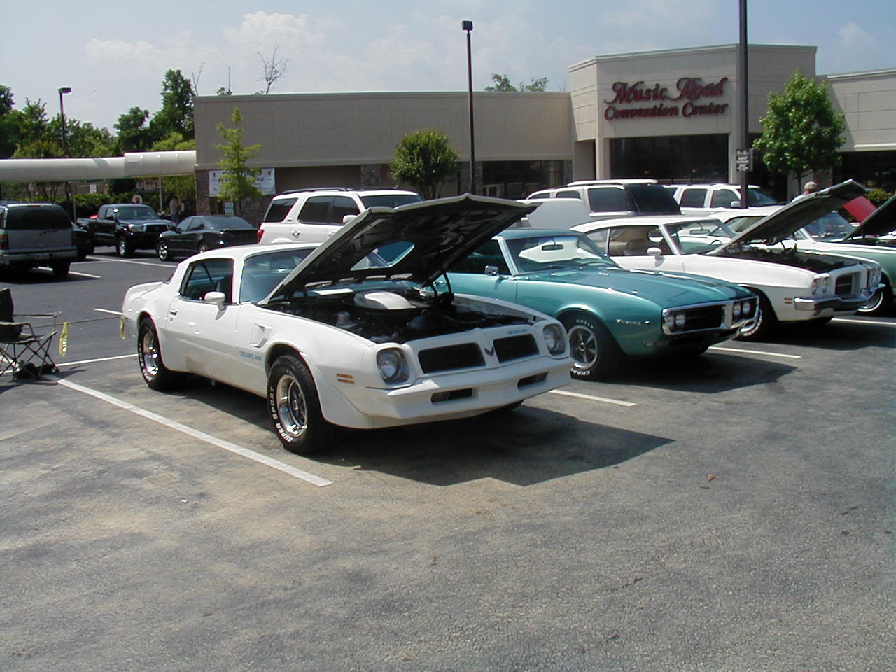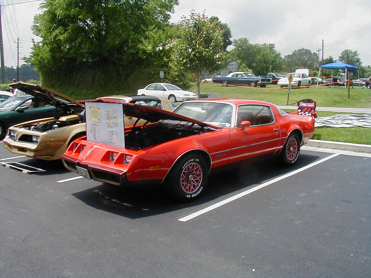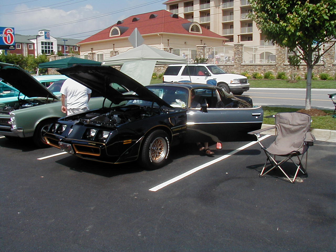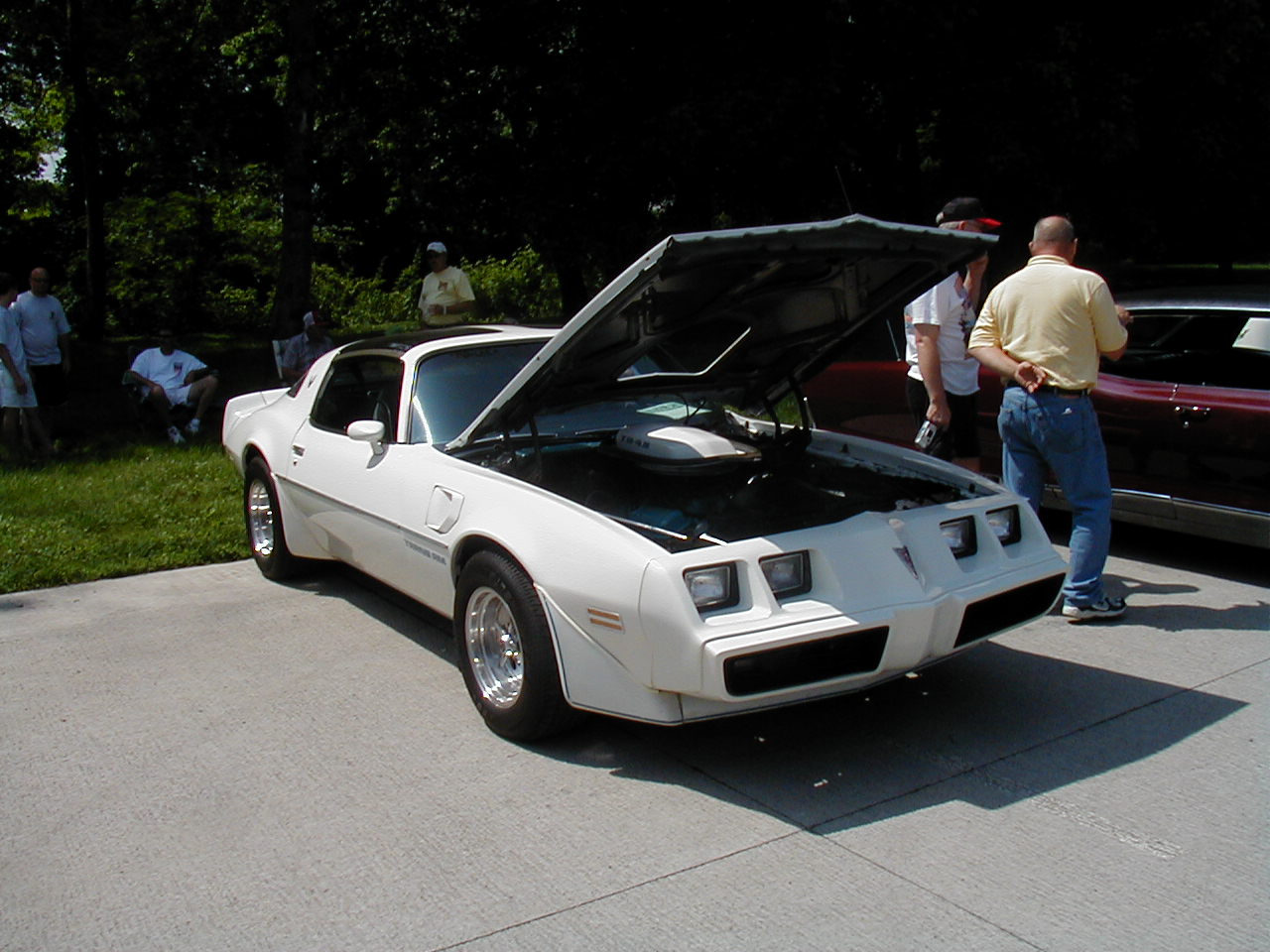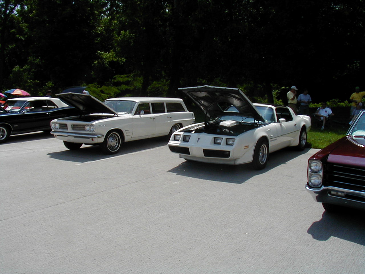 | Look at the great color schemes on these two 1rst-gen Convertibles. Nice, huh? | These two guys are discussing the routing of hard lines under the ram air setup (see it sitting on the ground?) That's part of the fun of car shows. |
