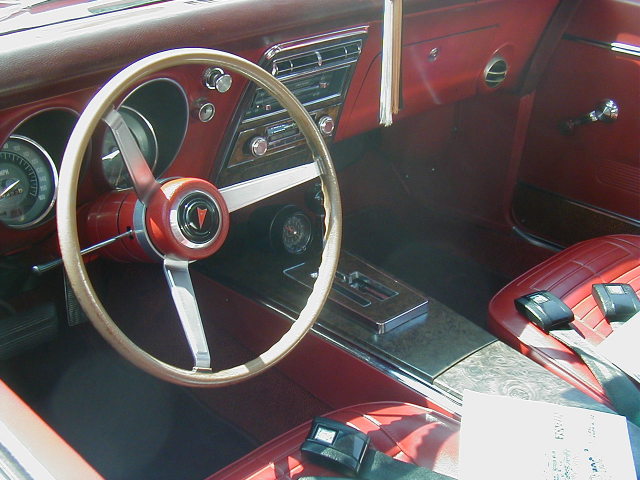 | Here's a nice 68 Firebird Convertible with the HO stripe | Interior of the 68 showing Console-mounted Hurst Dualgate. |