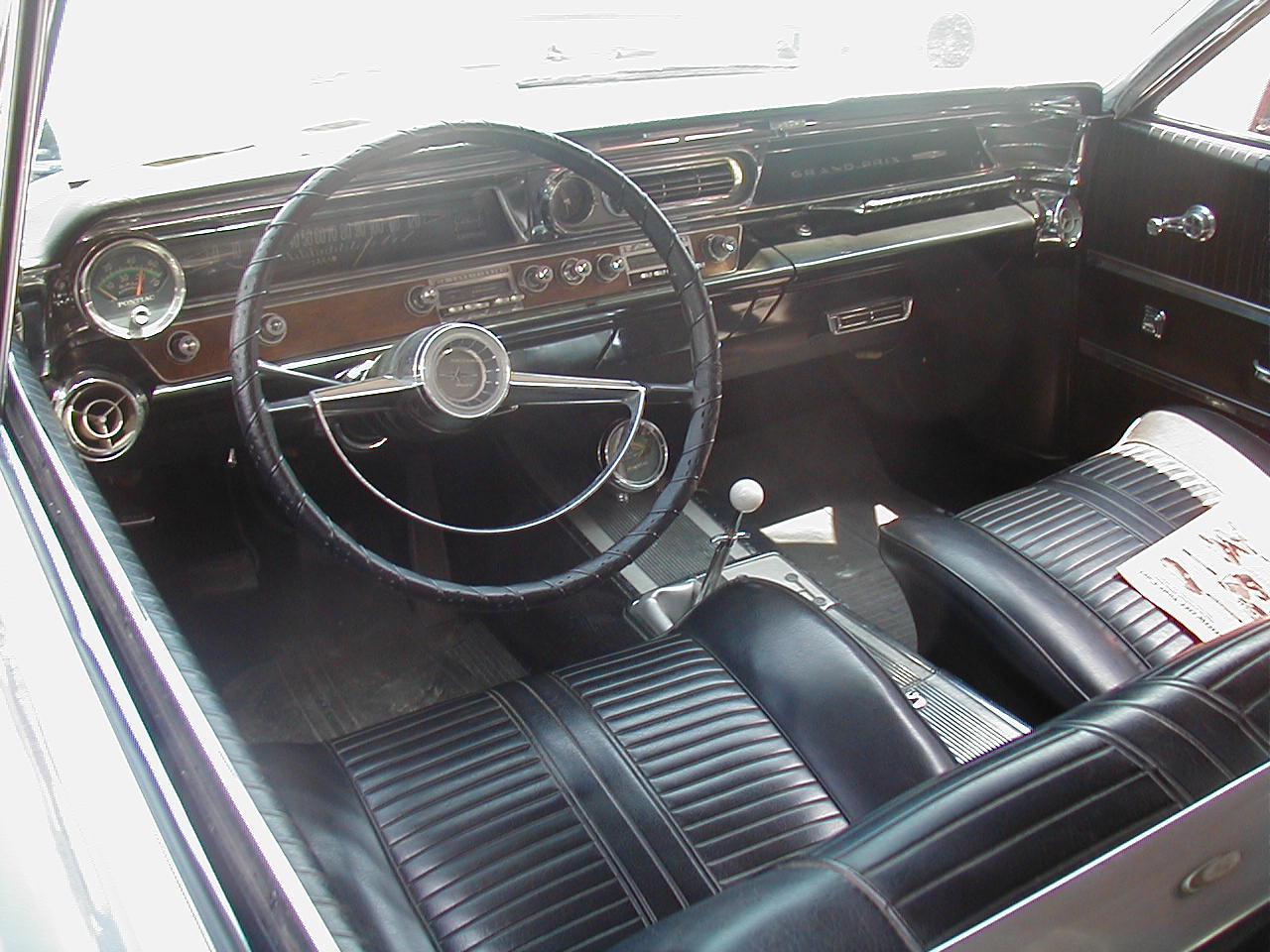 | Note the 8-lug wheels and vinyl top. Grand Prixs are supposed to have a lot of nice stuff on them. | Here's the interior of a 421 4-speed 1963 Grand Prix. The tach is on the left of the dash. That gage on the console is manifold vacuum. These cars had a great-looking console, in addition to the extra gages. |