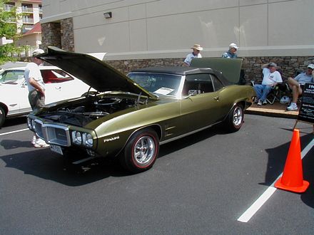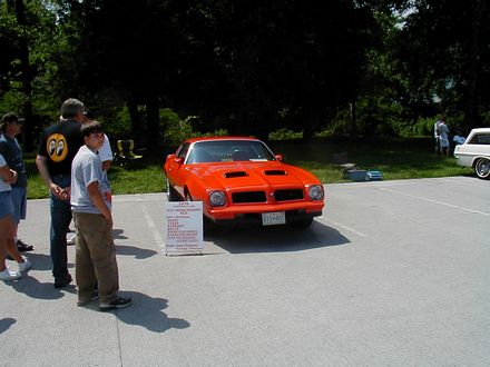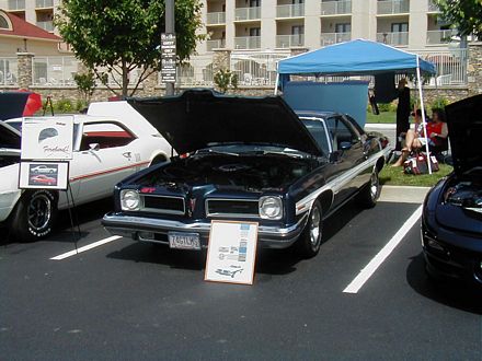 | The first thing I saw, in the parking lot, was this very sharp 77 Grand Prix. Hey, man, the car show is across the street! I love Grand Prixs. | This Judge looks pretty, but has a Big Block Chevrolet under the hood. Well, it really doesn't have much of a hood. Not my thing. |