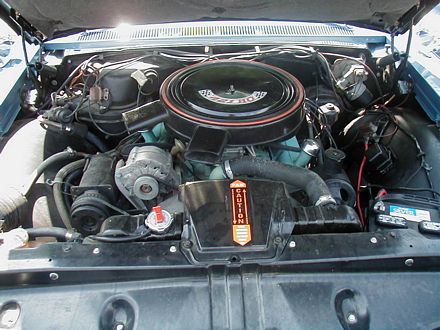| Here's an underhood closeup of the 75 pictured above. Very nice car. | This sundance yellow 79 is a one-owner car. The sun's too bright!! Aaaah |