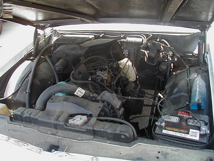 | The 1963 Tempest Wagon was for sale ($4900), and a very solid old car. It's definitely something you don't see every day. | It had the half-a-389 4-cylinder and 2-speed automatic. I couldn't figure out what the wadded-up newspaper was for. |