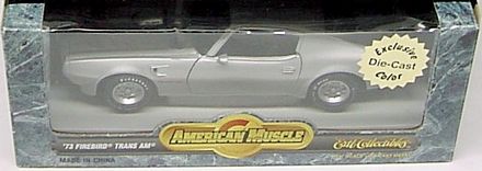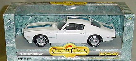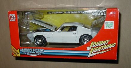 | In a similar vein, Revell introduced a metal body pinstriped kit in 2005. This kit looks excellent for the money, but as yet remains in the box. I would be interested in comparing it to the Franklin Mint car below. | Johnny Lightning has come out with a larger scale muscle car series that includes this 1:24 scale 1970 T/A. It's a little more like a toy than some of the other cars, but still very nice. |