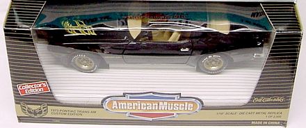 | 1978 | Pontiac | Trans Am | Black w/ Gold bird, etc. | Racing Champions | Motor Trend Mint Edition, Ltd. Ed. 1 of 19,998 |