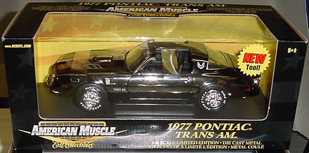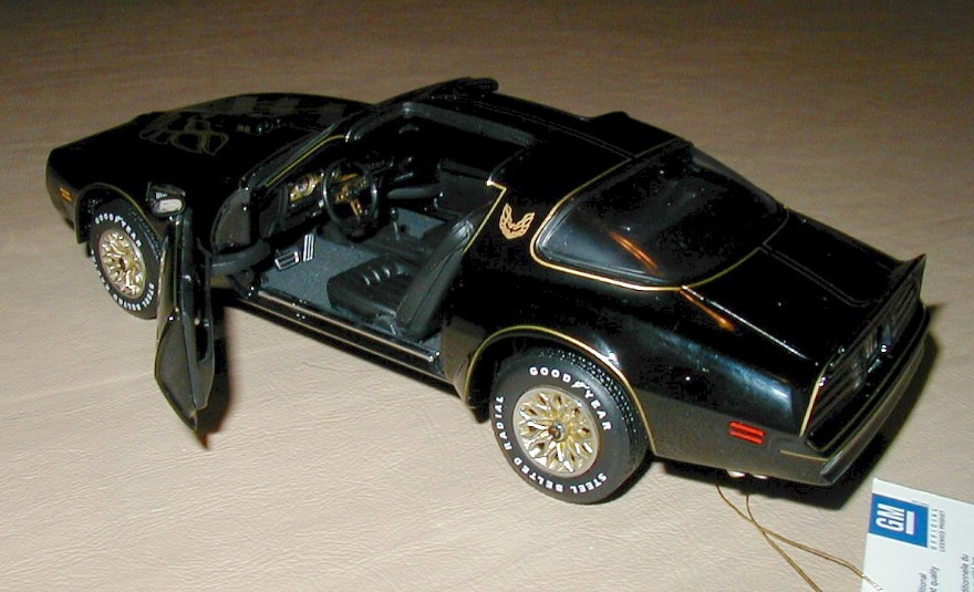 | 1977 | Pontiac | Trans Am | Black w/Gold decals | ERTL | Bandit Trans Am, part of 4 car set |