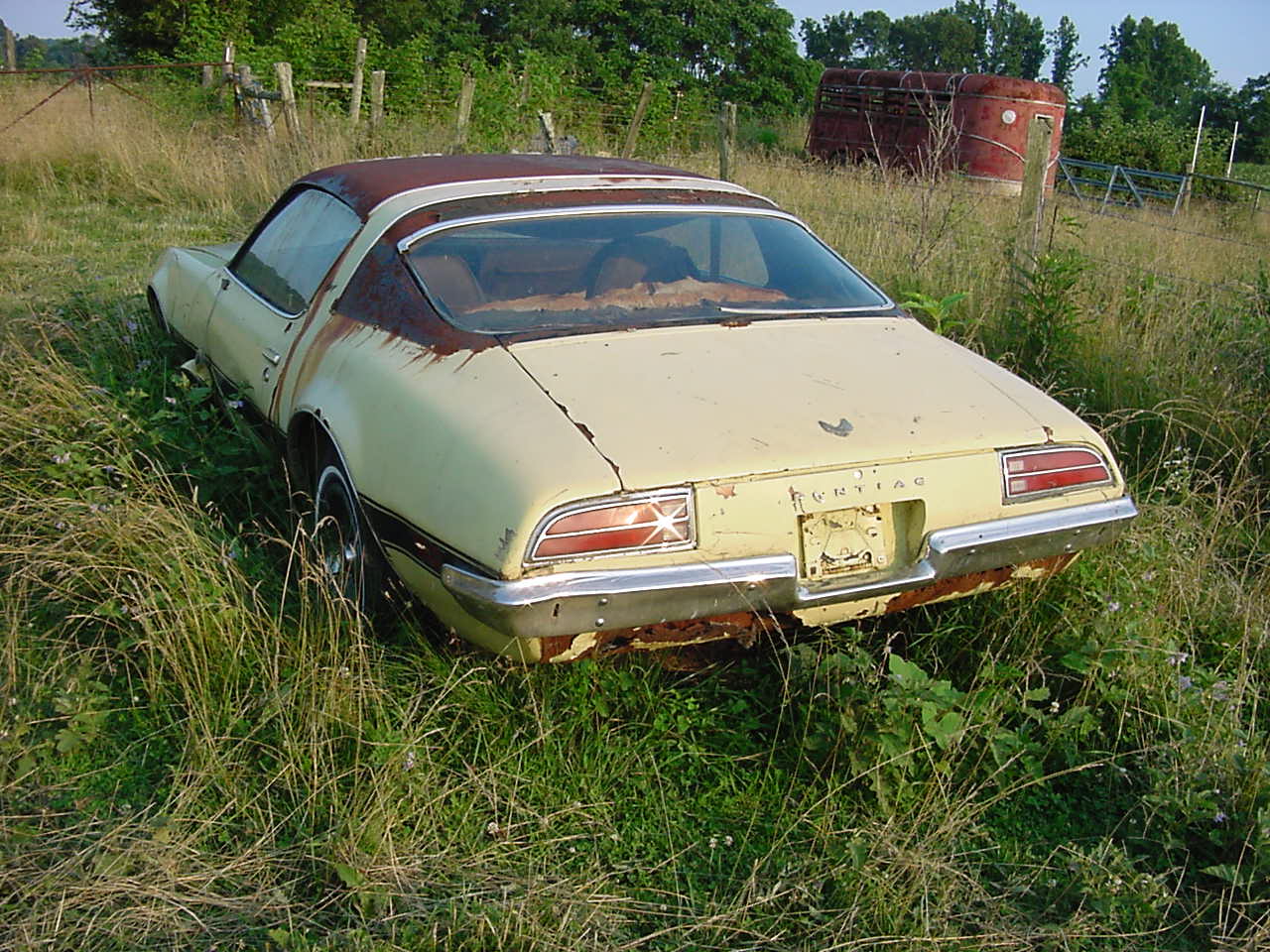 At 19:30 hours the subject 1972 Firebird was successfully located by Team Hoghead.  The Firebird was successfully extracted from a 9-year exile in this pasture... but not without mishap.  Team Hoghead learned this pasture was filled with landmines... landmines comprised of livestock fecal material... Team Hoghead almost had a "man down" during the extraction process... but disaster was averted with only some lingering odor and nasty stains...