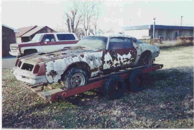 Pete and RepeatPete is a 1980 WS6 that Joe Dragged home from a business trip. It had a Buick 455 under the hood. Repeat is the 1978 T/A on the left in this picture. We called this car "Repeat" because it looked so much like our first car, "Chester". We bought it off ebay here in Tennessee. It was advertised as a solid car, but most everything but the body was too rough to part out. | ![]() | ||