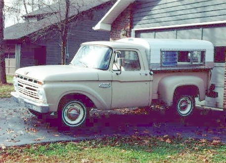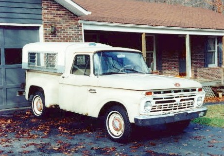 In November of 1991 I bought this 1966 Ford Stepside truck and drove it home. The brakes were spongy and the suspension felt loose. It had a 240 cu in 6 cylinder engine with a 3-speed manual transmission with column shift ("three in the tree"). It still had the original paint on it, even though it needs some paint and body work.