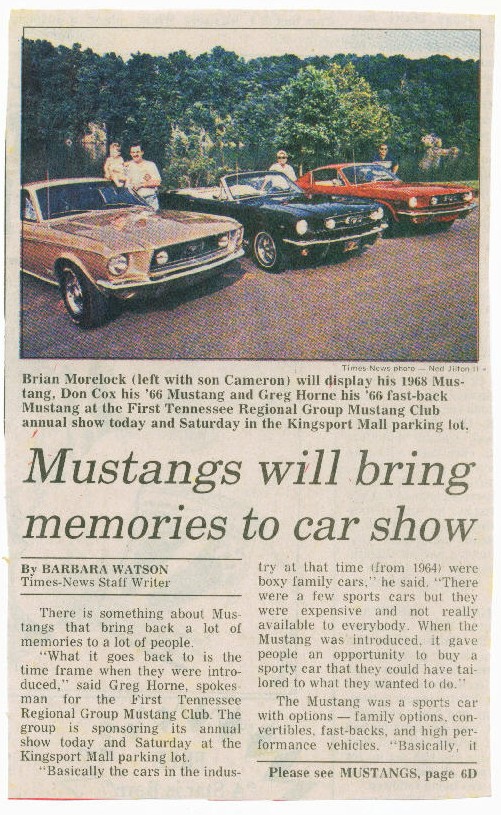 | First Tennessee Regional Group MCA Show (2nd Annual Mustang Roundup) in 1986 in Kingsport, TN. | First Tennessee Regional Group MCA Show (3rd Annual Mustang Roundup) in 1987 in Kingsport, TN. |