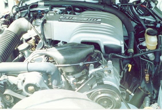 | I don't think I've had a car this clean since 1988!! I've got to admit that I was fanatical about keeping this Mustang clean... like wiping off the nose EACH time we drove it to keep the bugs from leaving permanent stains on it, cleaning the aluminum wheels with Q-tips, touching up any blemishes in the paint every 6 months.... | The 5.0 liter HO was a very nice engine!! It had great torque, horsepower, and sound!! It got very respectable gas mileage with the 5-speed transmission. It was a blast to drive. I know the hatchbacks were heavier than the coupes, but the extra room came in handy!! |