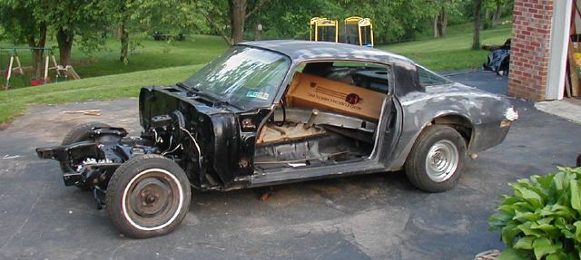 I am happy to report that I have located some good sheet metal to fix Dutch. This stripped 76 Trans Am hull came from Pennsylvania, and is virtually rust free. I don't know its history at all, except that it was torn apart by somebody who wanted to build a race car. It was advertised on classicalpontiac.com this spring, and this is all that was left when I picked it up on May 3.