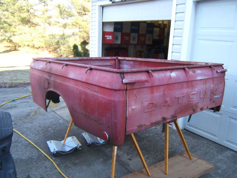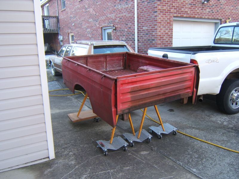 The truck is incredibly straight, but there are a few stretched areas in the bed, where objects dented it from inside. I am going to hammer and dolly this as well as I can. I know that filler in the bed is just asking for it to be knocked out later.