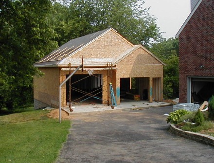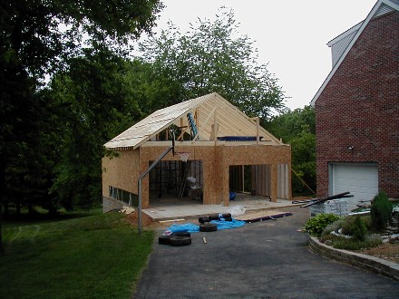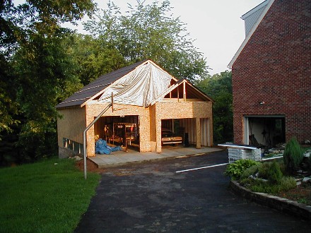 | It's been one year since I dug the basement for the garage. It almost looks like civilized people have moved into my house, but of course we know better. I still don't have that gas station light fixture up, but it's looking pretty good anyway. Go back tok the "artist's rendition" and see how I did. | ![]() |