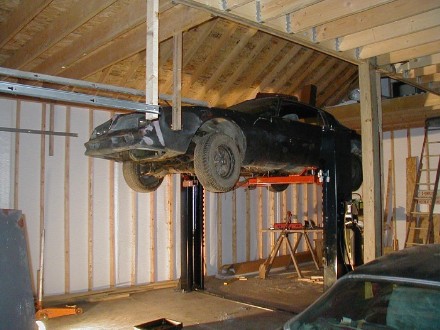 Firebird takes to the airIt's been a while since I posted anything. It was a big day when I got the lift working and picked up this junk Firebird. The inside of the garage sports a partial third floor with open space for the lift to raise tall vehicles.I haven't crashed through the floor yet, but then this car only weighs about 2500 pounds in its current state. The lift is good for *gulp* 8000. |