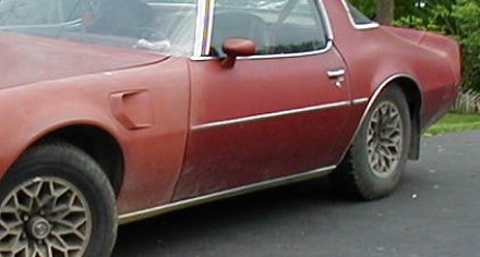 Rocker Panel Moldings weren't available on Formula and Trans Am, so they're not seen much at car shows. They were standard equipment on the Esprit, though, as seen on this red Esprit (wearing the fenders from "Possum")