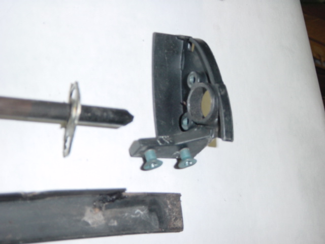 | There is a guide/retainer that the latch rods pass through that are held to the metal support bracket with 2 hex-head screws. Use your 9/32 socket to get them out. | |